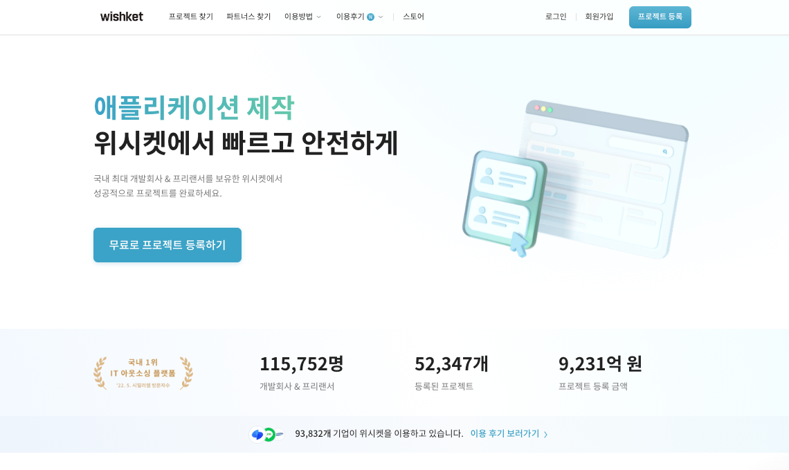 위시켓 외주 전문가는 의뢰 기업과 개발사를 연결하는 중개자입니다. 때문에 낮은 금액을 제시해 프로젝트를 바로 수주하거나 높은 금액을 제시해 이익을 남기려는 목적 없이, 객관적인 입장에서 견적을 안내할 수 있습니다. 또 7만 건 이상의 프로젝트를 진행한 경험을 토대로 견적을 안내하기 때문에 정확한 금액을 산출할 수 있습니다.