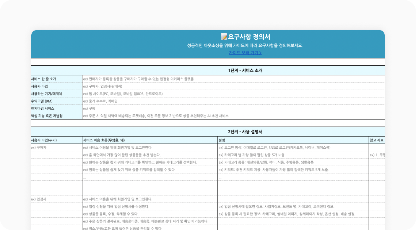 💡 위시켓 요구사항 정의서 샘플 다운로드 받기 >