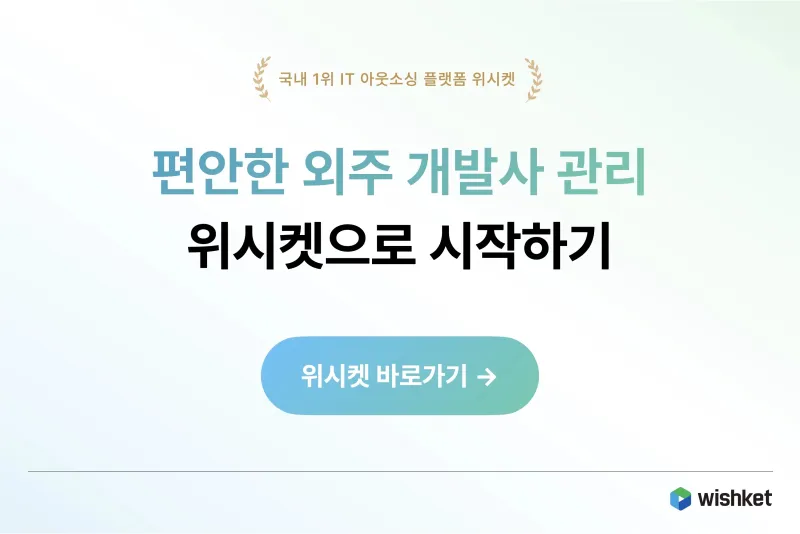 이를 돕기 위해 위시켓에서는 1:1 매니저 제도를 운영합니다. 외주 개발사와 중간에서 의견을 조율하는 건 기본, 필요하다면 미팅에 참관해서 협의를 돕기도, 프로젝트 일정 자체를 관리해 드리기도, 행여 분쟁이 생겼을 때 클라이언트 편에 서서 중재 역할도 하는 중입니다. IT나 외주를 잘 알지 못하는 분들도 위시켓에서라면 문제없습니다. IT 외주 프로젝트를 앞두고 있다면 쉽게 위시켓으로 성공률을 높여 보시기 바랍니다.